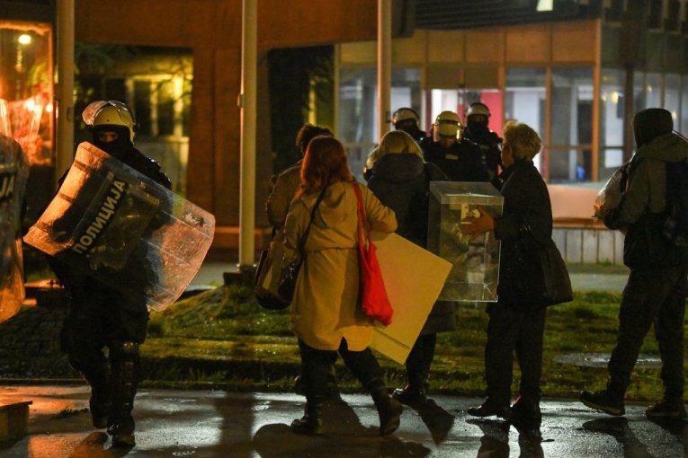 Ekipa Republike zabeležila je kako u svom štabu, neposredno pred ponoć, dobijaju instrukcije, nakon čega se organizovano upućuju ka jednom biračkom mestu za koje tvrde da su na njemu pokradeni. Tamo nastavljaju s uzvicima: "Izađite, lopovi", nastojeći da dodatno podignu tenzije.