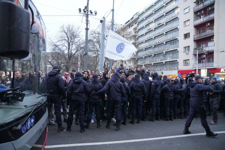 Drama ispred zgrade Rektorata ne jenjava, a situacija je iz minuta u minut sve kritičnija i napetija, dok agresivni blokaderi ne prestaju s pokušajima guranja i koškanja s policijskim kordonom, koji uz nadljudske napore pokušava da održi red i mir.