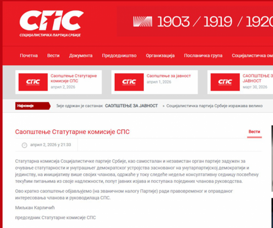 - Ovo kratko saopštenje objavljujemo radi pravovremenog i opravdanog interesovanja članova i rukovodilaca SPS - navodi se u saopštenju.