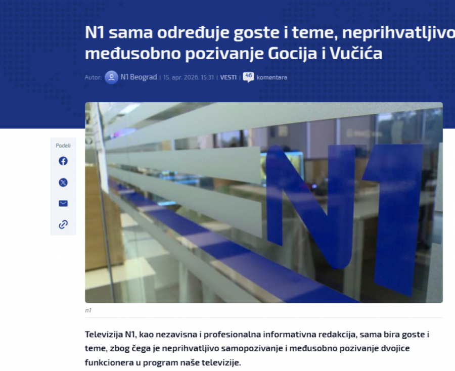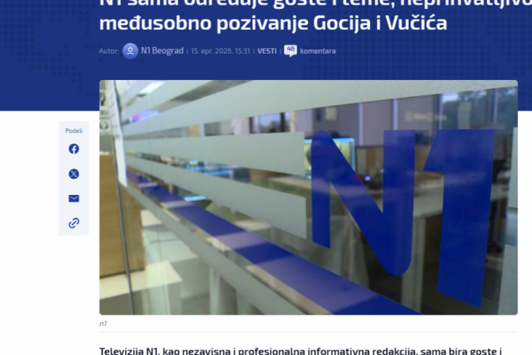- Pozivam gospodina Gocija da dođe sa mnom u debatu, molim ga da dođe sa mnom u debatu. Prihvatam s oduševljenjem, baš na televiziji N1. Verujem da će nam uputiti poziv. A ako nam ne upute poziv, pokazaće se da su i gospodin Goci i ljudi s N1 lažovi, u šta ja ne verujem. Nemoguće da je Goci lažov. Spreman sam da dođem na N1, makar meni i bubicu malo stišali da se slabije čujem. Ne mislim da je snaga u decibelima, već u argumentima koje iznosite, te pozivam gospodina Gocija u debatu, baš na njegovu omiljenu televiziju. Verujem da su oni stvarno profesionalni i objektivni i da će me pozvati - rekao je Vučić.