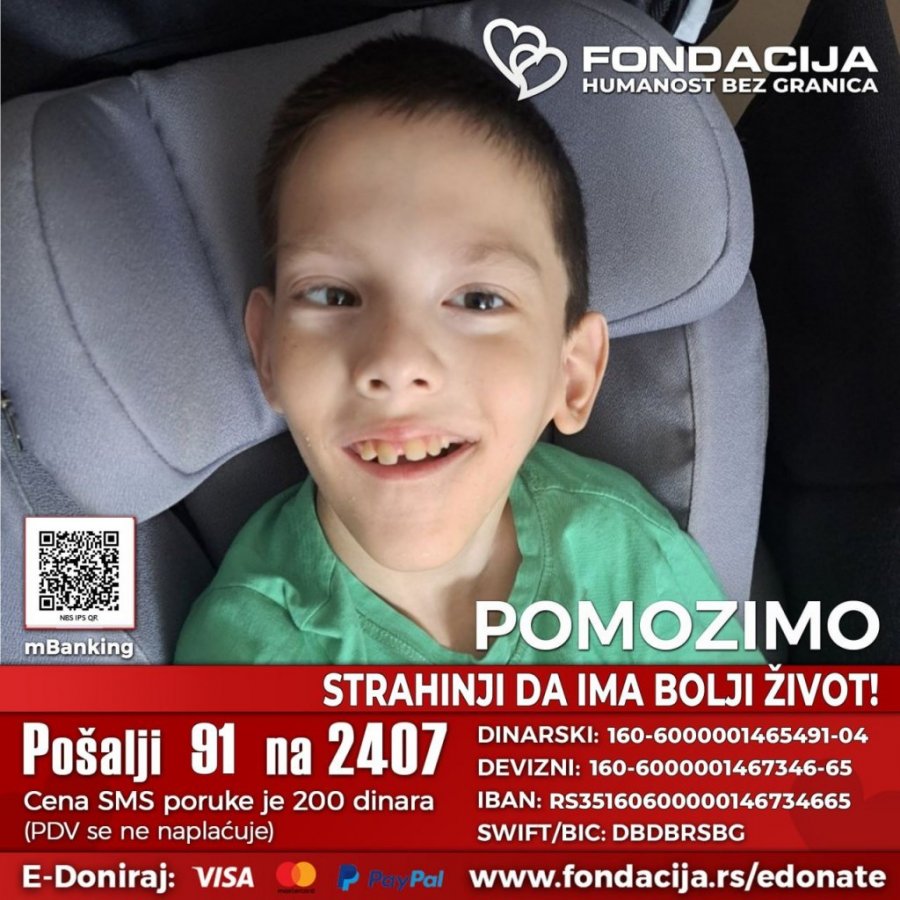 Njegovi roditelji su do sada sami snosili sve troškove, ali su iscrpeli sve mogućnosti. Zato se obraćamo svima vama – ljudima dobrog srca – da zajedno pomognemo Strahinji da nastavi svoju borbu i dobije šansu za dostojanstveniji i srećniji život.