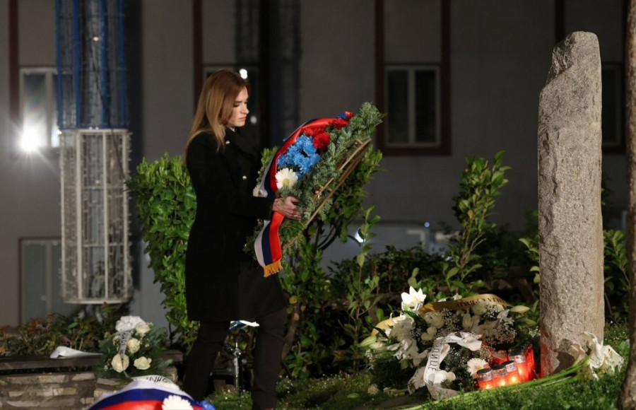 Ministarka za rad, zapošljavanje, boračka i socijalna pitanja Milica Đurđević Stamenkovski rano jutros, oko dva časa ujutru, položila je vence na mestu gde su NATO bombe ubile 16 radnika RTS.