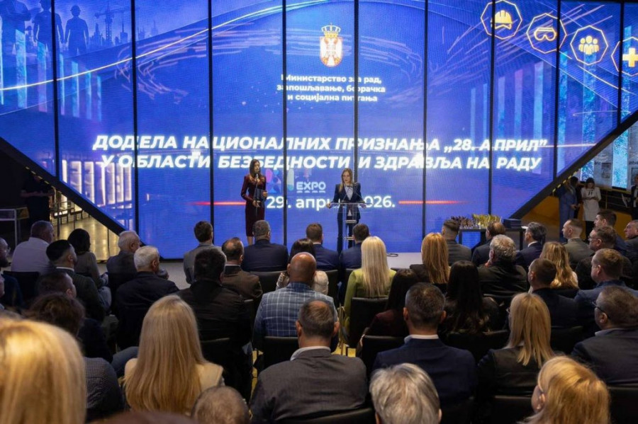 Pohvalnice, plakete i povelje "28. april" koje predstavljaju nacionalna priznanja u oblasti bezbednosti i zdravlja na radu dodeljene su danas u Ekspo Plejgraundu, a ministarka za rad, zapošljavanje, boračka i socijalna pitanja Milica Đurđević Stamenkovski istakla je da je jedan od prioriteta njenog resora da radnici u Srbiji budu bezbedni i zaštićeni, da ne bude rada na crno i da budu prijavljeni.
