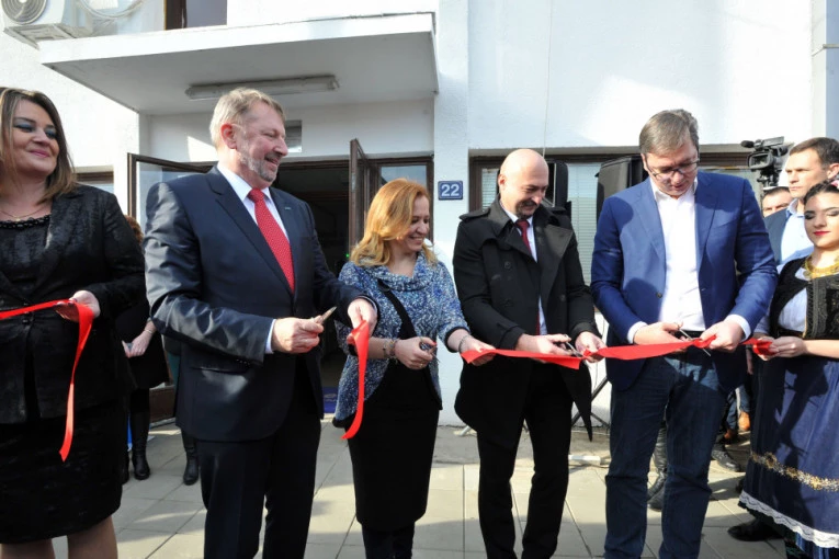 Foto: Tanjug/D. GOLL- Osim tih 1.000 ljudi koji će da rade, obećavam da ćemo nastaviti da gradimo, da zapošljavamo ljude, da ostajete ovde i ne idete po belom svetu da se zapošlajavate i brinete za decu - poručio im je predsednik.