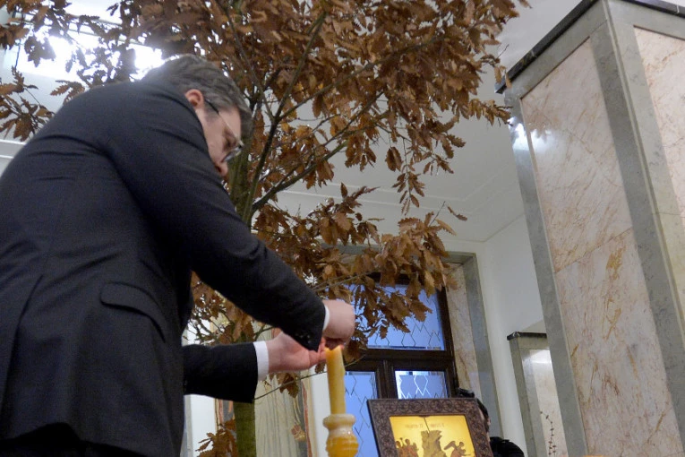 Predsednik Srbije Aleksandar Vučić uneo je danas badnjak u zgradu Generalnog sekretarijata predsednika Republike na Andrićevom vencu.
