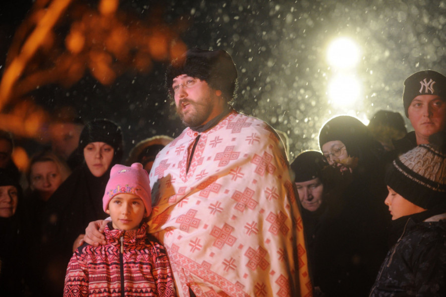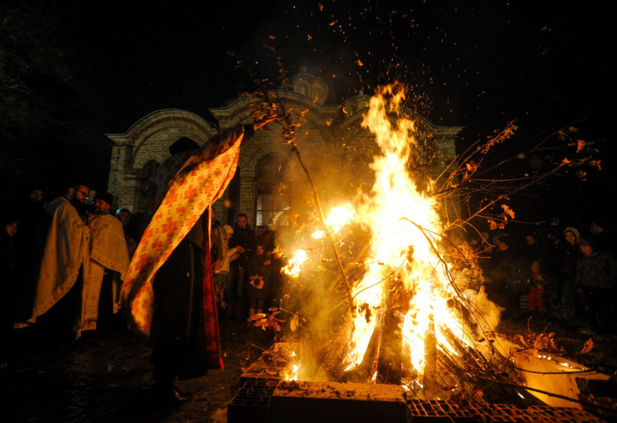 Foto: Tanjug/F. KRAJINČANIĆNakon paljenja Badnjaka, svešetnici su podelili pogaču okupljenima, orahe, pšenicu, a za najmlađe su pripremili i bombone.