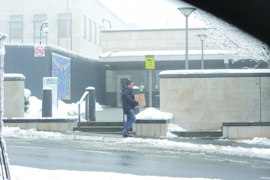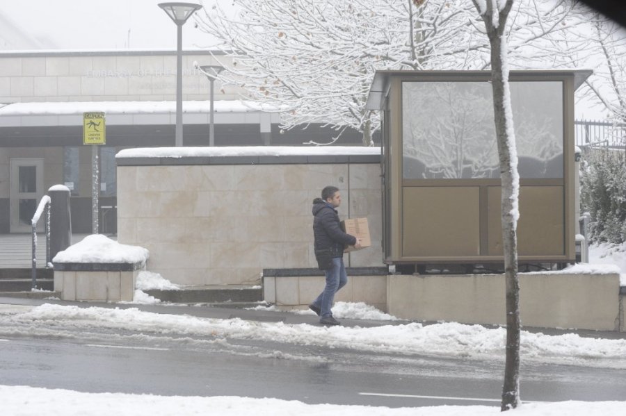 Stroge mere bezbednosti, naravno, nalagale su da paket bude proveren pre nego što završi u Skotovim rukama. Posle pitanja šta se nalazi u paketu, kutiju su službenici prekontrolisali detektorom za metal, a onda je spustili na zemlju ispred glavnog ulaza u ambasadu. Sve vreme naš novinar stajao je pored paketa, uz nadzor jednog od pripadnika obezbeđenja.