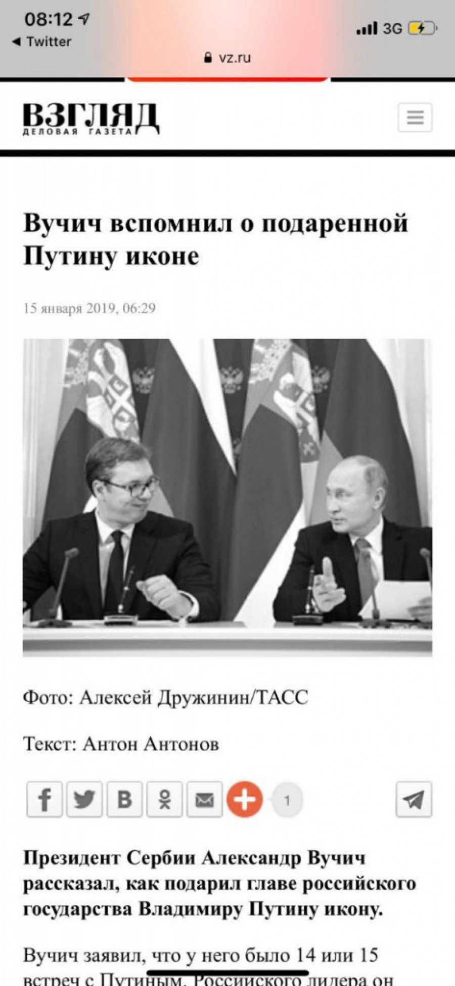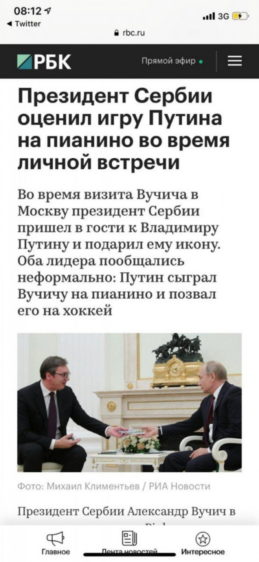 Ruski mediji se danas bave posetom Putina Srbiji koja se očekuje 17. januara i odnosu dveju zemalja, ali i poklonom koji je Vučić spremio za svog kolegu iz Rusije, navodeći da je u pitanju ikona.