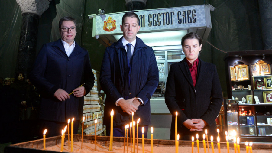 Foto: Tanjug/T. VALIČPaljenjem sveća počast ubijenom Ivanoviću u Hramu Svetog Save odali su i predsednik Srbije Aleksandar Vučić, predsednica Vlade Srbije Ana Brnabić, direktor Kancelarije za Kosovo i Metohiju Marko Ðurić i ministar odbrane Aleksandar Vulin.