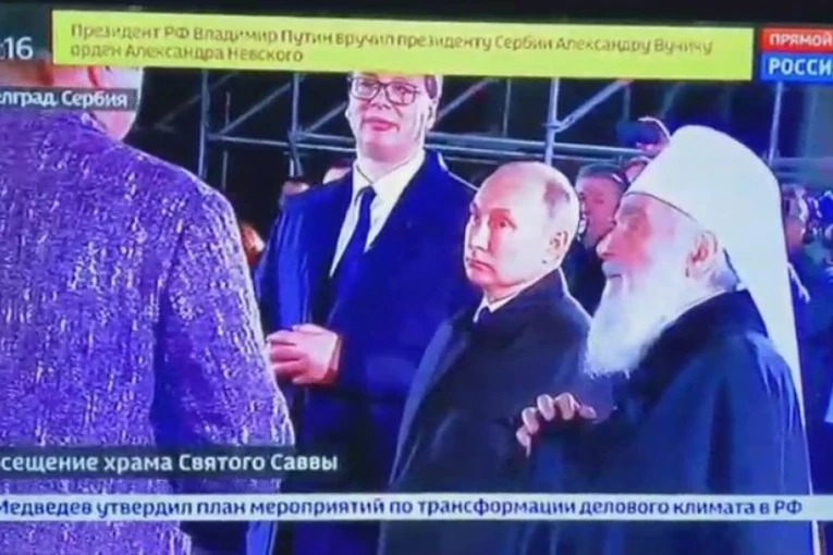 Foto: printscreen/russia24Podsetimo, predsednici Srbije i Rusije, Aleksandar Vučić i Vladimir Putin, obišli su večeras u pratnji patrijaraha Irineja, Hram Svetog Save ispred kog ih je dočekalo više od 120.000 građana.