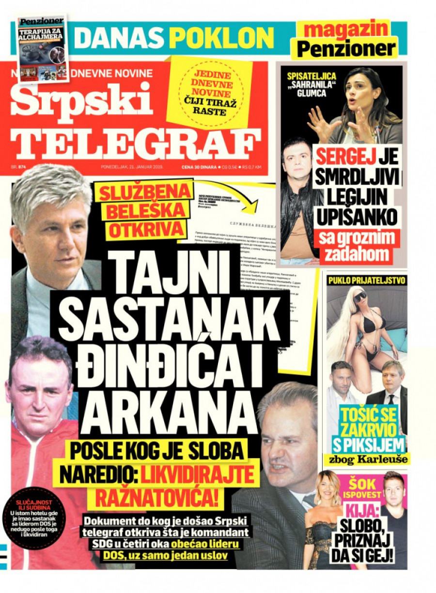 Željko Ražnatović Arkan ubijen je 15. januara 2000. godine u hotelu "Interkontinental" zato što se na tom istom mestu nešto ranije tajno sastao sa Zoranom Đinđićem. Na ovo ukazuju operativna saznanja do kojih je nedugo nakon likvidacije došla Državna bezbednost, o čemu je sačinjena i službena beleška koju Srpski telegraf objavljuje.