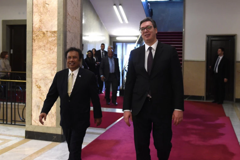 Foto: Tanjug/D. KUJUNDŽIĆ- Srećan sam što sam ovde i želeo bih da prenesem poziv ne samo vladi, nego i ljudima u Srbiji da dođu u naš deo sveta, da dođu da plivaju sa ajkulama. Ajkule su vegetarijanci, neće napasti ljude u našem delu sveta. Samo u Kaliforniji se to dešava, kod nas ne... - rekao je predsednik te pacifičke zemlje.