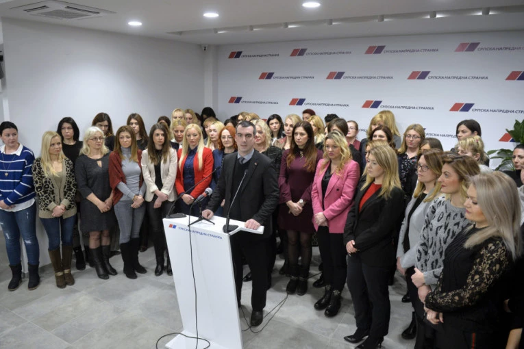 Foto: Tanjug/R. PRELIĆOrlić je na pres konferenciji, kojoj je prisustvovalo i 60-ak članica SNS, ocenio da takvo brutalno i najprizemnije vređanje jasno pokazuje razliku između Srbije koju aktuelna vlast gradi i one kakvu opozicija želi.