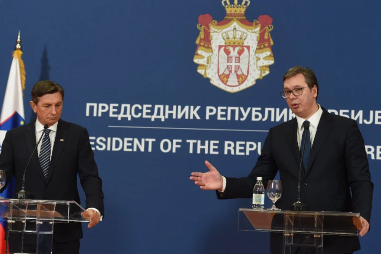 Predsednik Srbije Aleksandar Vučić je izjavio da je sa predsednikom Slovenije Borutom Pahorom razgovarao o unapređenju bilateralne saradnje dve zemlje na političkom i ekonomskom planu, o rešavanu pitanja KiM i zahvalio mu na podršci evropskom putu Srbije.