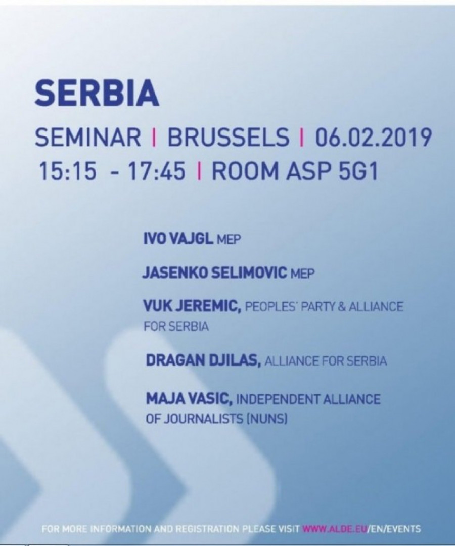 Lideri Saveza za Srbiju Dragan Đilas i Vuk Jeremić ne propuštaju priliku da oblate Srbiju i aktuelnu vlast, a to će učiniti i 6. februara na tribini u Briselu, na kojoj će pored njih govoriti i osvedočeni protivnici Srbije Evropskom parlamentu, Ivo Vajgl i Jasenko Selimović.