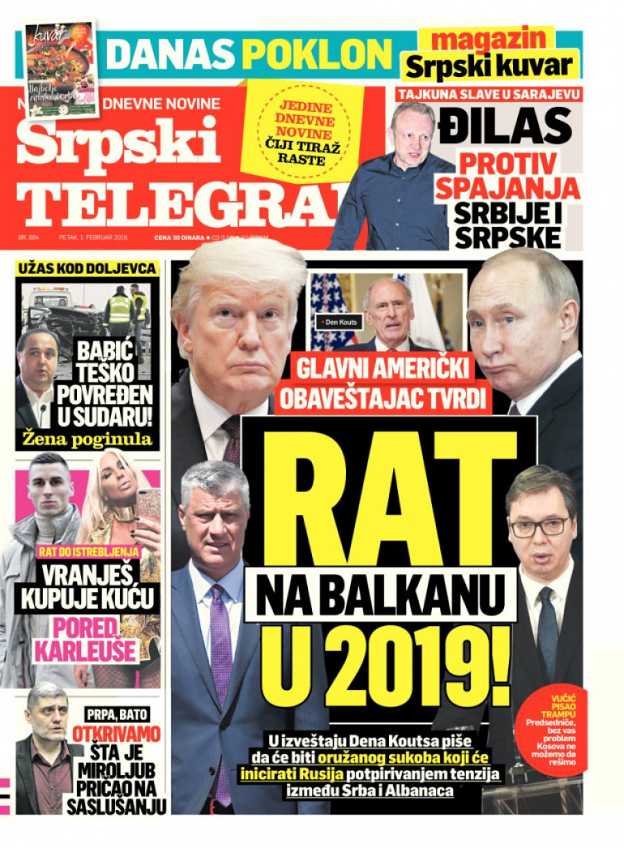 Glavni američki obaveštajac najavljuje novo balkansko krvoproliće, i to u ovoj godini, a kao glavne aktere vidi Srbe i Albance. Ako se to desi, kaže, biće kriv Vladimir Putin.