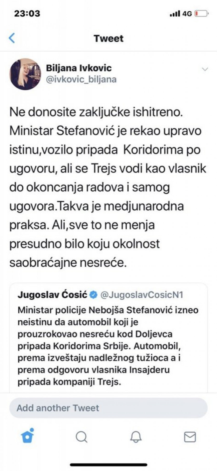 Ivković poklopila Ćosića: Vozilo pripada Koridorima po ugovoru