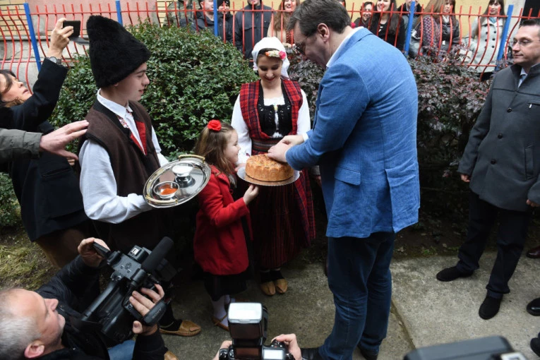 Predsednik je dočekan na tradicionalan način, uz pogaču i so.