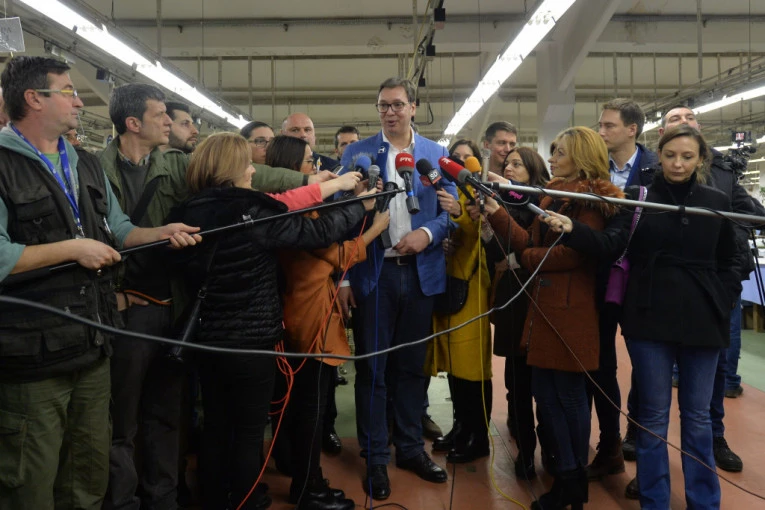 Foto: Tanjug/Z. ŽESTIĆVučić je, nakon obilaska fabrike Jumko u Vranju, na pitanje albanske novinarke iz Bujanovca o odnosima Albanca i Srba u toj opštini, rekao da će, kada autoput i gasovod dođu do tog grada to značajno doprineti dovođenju investitora, a tako koristiti i Srbima i Albancima.