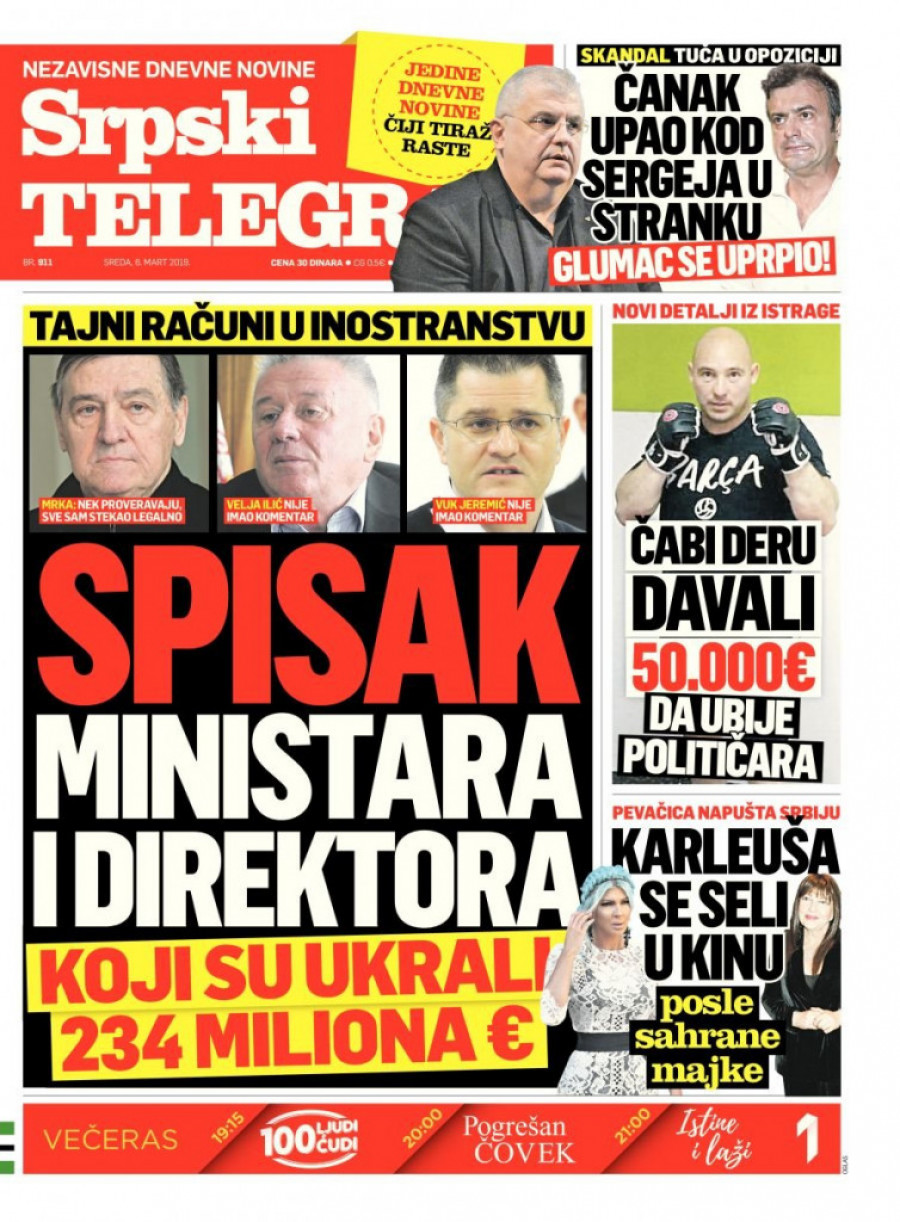Istragom o malverzacijama bivših državnih čelnika bavile su se i naše bezbednosne službe, o čemu je Srpski telegraf juče pisao, a kako su nam naveli izvori iz istrage, u službenim beleškama navodi se 18 imena bivših ministara i direktora javnih preduzeća koji su nezakonito prisvojili 234 miliona evra (pogledaj okvir).