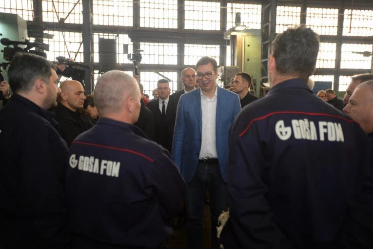 - Hoću da vam čestitam što ste sačuvali fabriku 2005. godine i što ste se sami postarali da ne bude uništena. Mi danas možemo da pomognemo mnogo više nego ranije, ako kupujete nove mašine mi možemo da damo 50 posto i da podstičemo dalje razvoj FOM-a koji ima dobru perspektivu. Polovinu novca za nove mašine ćete dobiti od države. Ukoliko nove radnike zapošljavate, daćemo subvencije. Pomoćićemo i oko dualnog obrazovanja koje ste tražili u Palanci. Izdvojićemo sredstva za školu jer nama ovakvi radnici nedostaju svuda - rekao je predsednik Srbije u proizvodnom pogonu Goše FOM.