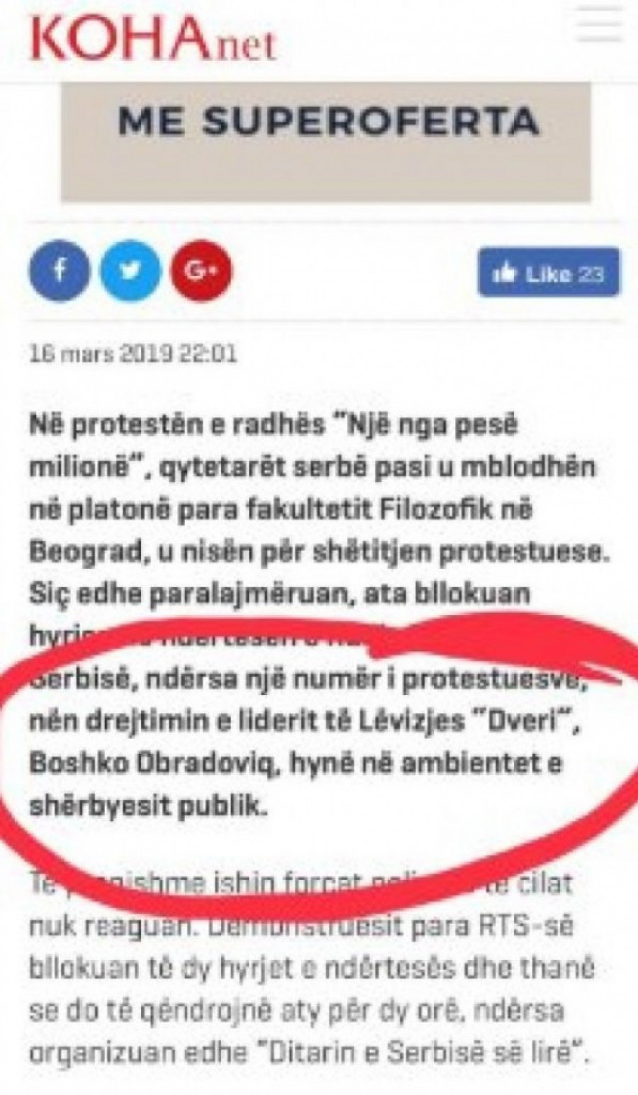 Nakon toga, "Koha" je Obradovića predstavila kao srpskog heroja, a sve po nalogu premijera lažne države Kosovo.