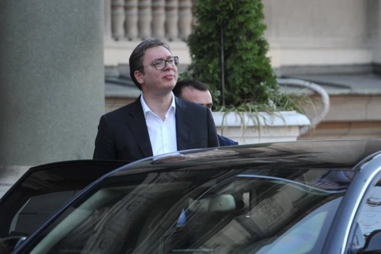 Predsednik Srbije Aleksandar Vučić danas je nešto posle 16 sati izašao na glavni ulaz iz zgrade Predsedništva na Andrićevom vencu i odvezao se službenim vozilom.