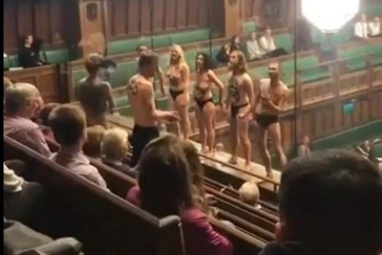 (VIDEO) Britanski parlament ovo nije video: Polugoli demonstranti prekinuli sednicu, evo šta traže