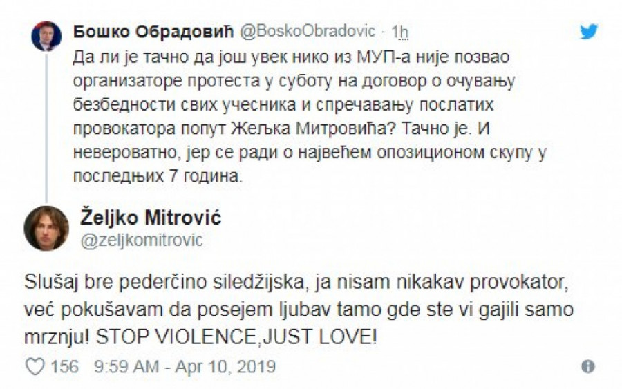 Obradovicu ti si duzan da na neki nacin sprecis da dodje do sukoba, da ne podstices ljude na mrznju.