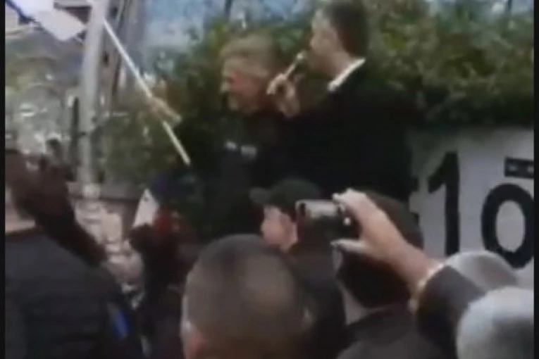 Foto: RepublikaNa današnjem skupu u Nišu deo okupljenih građana izviždao Obradovića i Mijailovića uz povike "lopovi, lopovi..." i "fašisto, fašisto...".