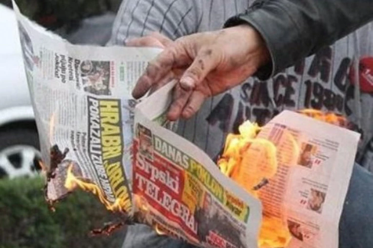 Foto: twitter.com/@MilenkoJovanov- I tako... Dok su Boškovi politički idoli svojevremeno spaljivali knjige koje nisu bile u skladu sa njihovom ideologijom, njegovi današnji sledbenici nastavljaju istim putem spaljivanjem novina koje imaju isti "nedostatak". Stop nasilju - napisao je Jovanov.