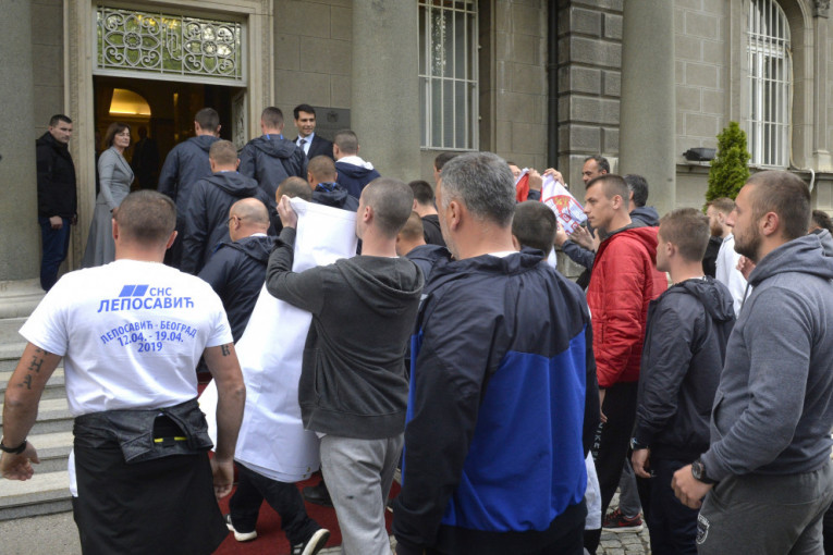 (FOTO) Srbi koji su pešice krenuli sa Kosova stigli u Beograd: Vučić ih dočekao!