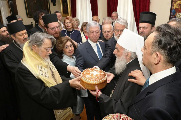 Po završetku liturgije, svete tajne pričešha i održane besede u Patrijaršijskom domu presečen je slavski kolač, a po običaju je priređena i "trpeza ljubavi".