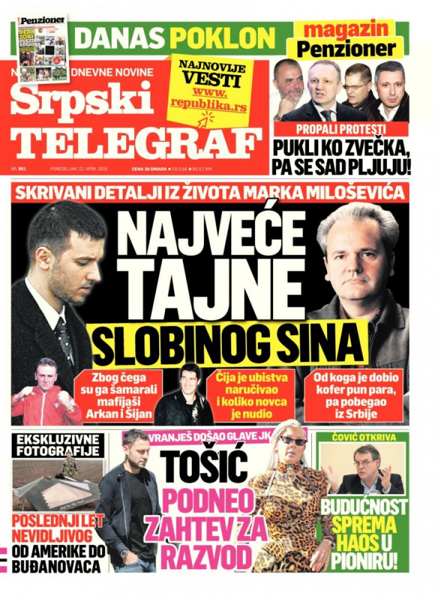 Izdanje "Srpskog telegrafa" za 22.04.2019.