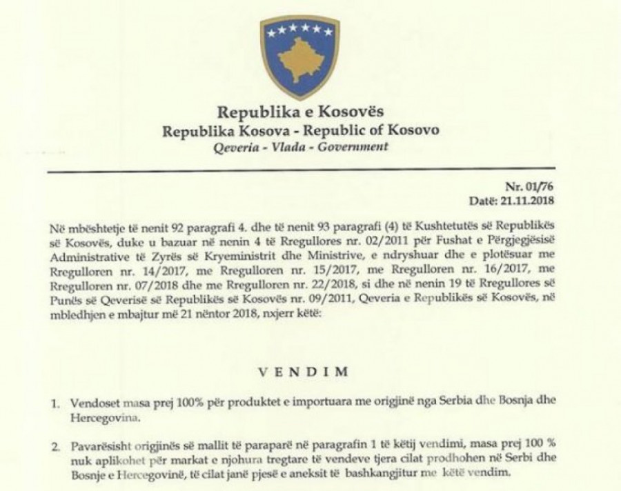 Prištinska vlada odlučila je na današnjoj sednici da ukine takse na robu životinjskog porekla, a ministar finansija Bedri Hamza je tim povodom izjavio da je ta roba Kosovu neophodna.
