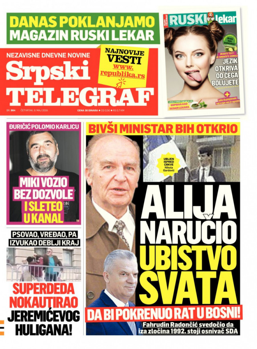 O ovoj temi, ali i o tome šta se dogodilo Mikiju Đuričiću pa je povredio karlicu, kao i o tome kako je Superdeda nokautirao Jeremićevog huligana, čitajte u sutrašnjem izdanju "Srpskog telegrafa" za 09.05.2019. godine ili na portalu "Republika".