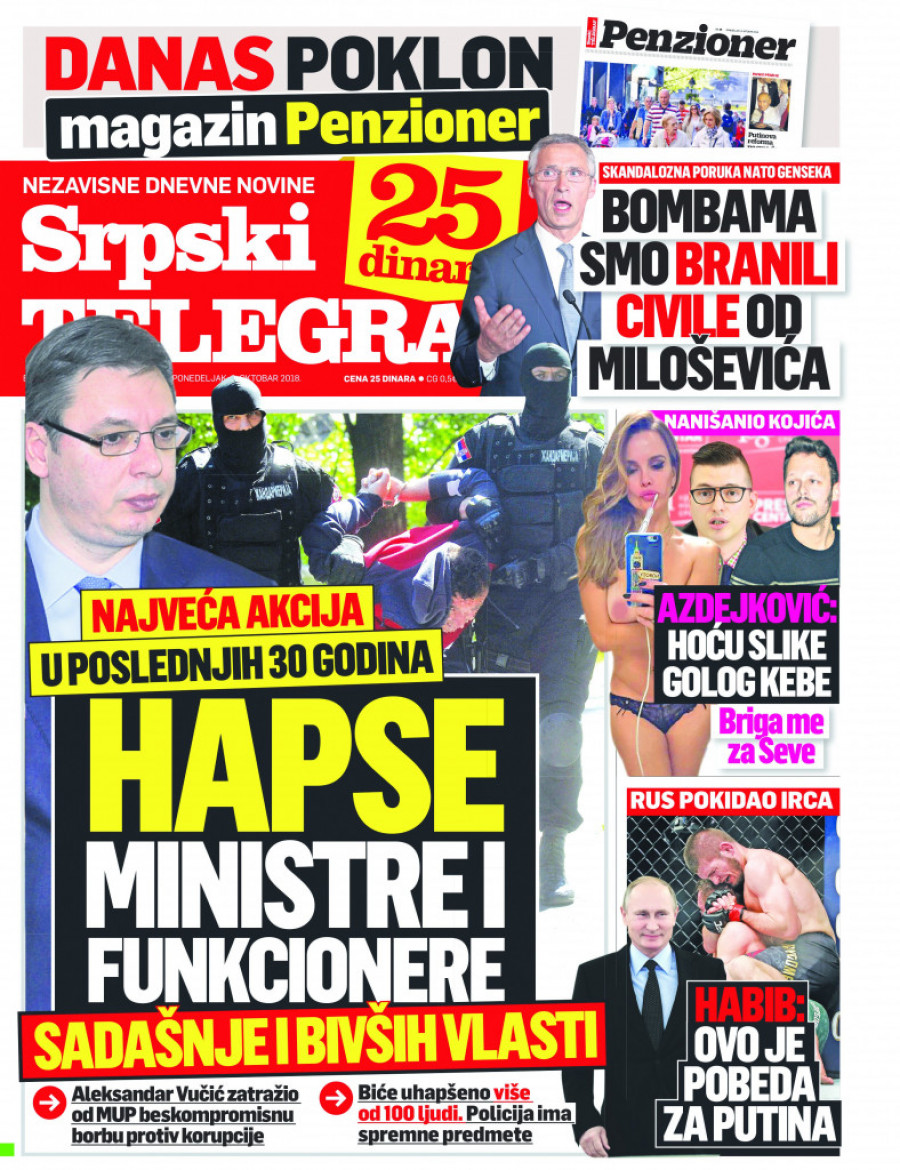 Foto: Tanjug/S. RADOVANOVIĆ- Nema tolerancije za one koji su zloupotrebili funkcije i pozicije da se na grbači naroda obogate. Svi oni koji su muljali sa javnim nabavkama, tenedrima, nameštali poslove, uzimali provizije biće procesuirani. Policija i nadležni organi već mesecima istražuju, a prema rezultatima dosadašnje istrage, došlo je vreme da za prljave poslove odgovara jedan ministar. Pored toga više nego dovoljno dokaza o korupciji, nameštanju poslova ima i u slučaju jednog poznatog biznismena, preciznije tajkuna, kao i jednog od lidera opozicije - navodi izvor Srpskog telegrafa koji nije želeo da otkrije više detalja.