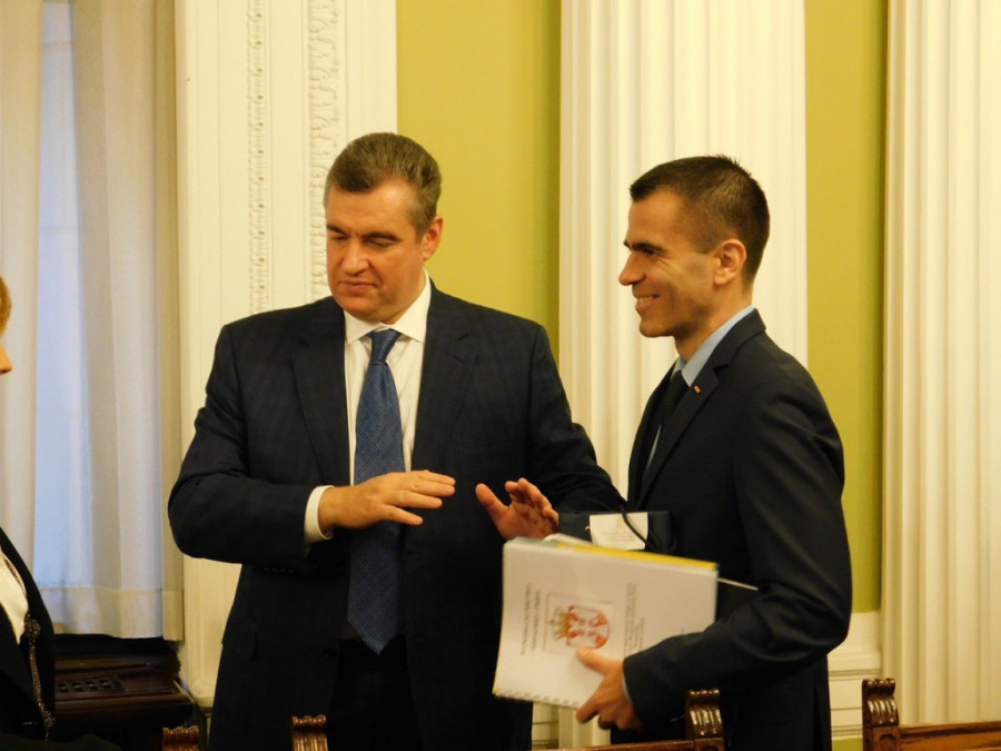 Predsednik Odbora za međunarodne poslove ruske Dume Leonid Slucki i ruski ambasador Aleksandar Čepurin sastali su se sa potpredsednikom Skupštine Srbije, Đorđem Milićevićem.