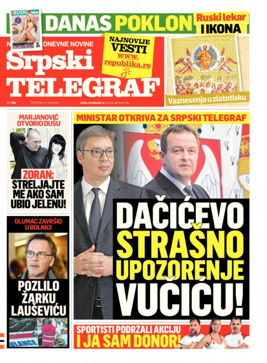 Dačić potvrdio pisanje Srpskog telegrafa: Vučiću rade o glavi!