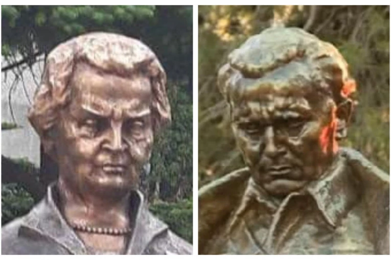 Foto: facebook.com/Art criticHaradinaj, Tači, Veselji i ostali napravili su bistu bivše državne sekretarke SAD, koja je bila jedan od glavnih zagovornika bombardovanja SR Jugoslavije, ali je spomenik napravljen tako da ona više liči na Josipa Broza Tita nego na sebe. Tako je Olbrajtova, koja je zajedno sa bivšim američkim predsednikom Bilom Klintonom došla u Prištinu kao specijalni gost ceremonije obeležavanja 20 godina od ulaska NATO na Kosovo, mogla samo kiselo da se osmehuje gledajući užas od spomenika na centralnom gradskom trgu.