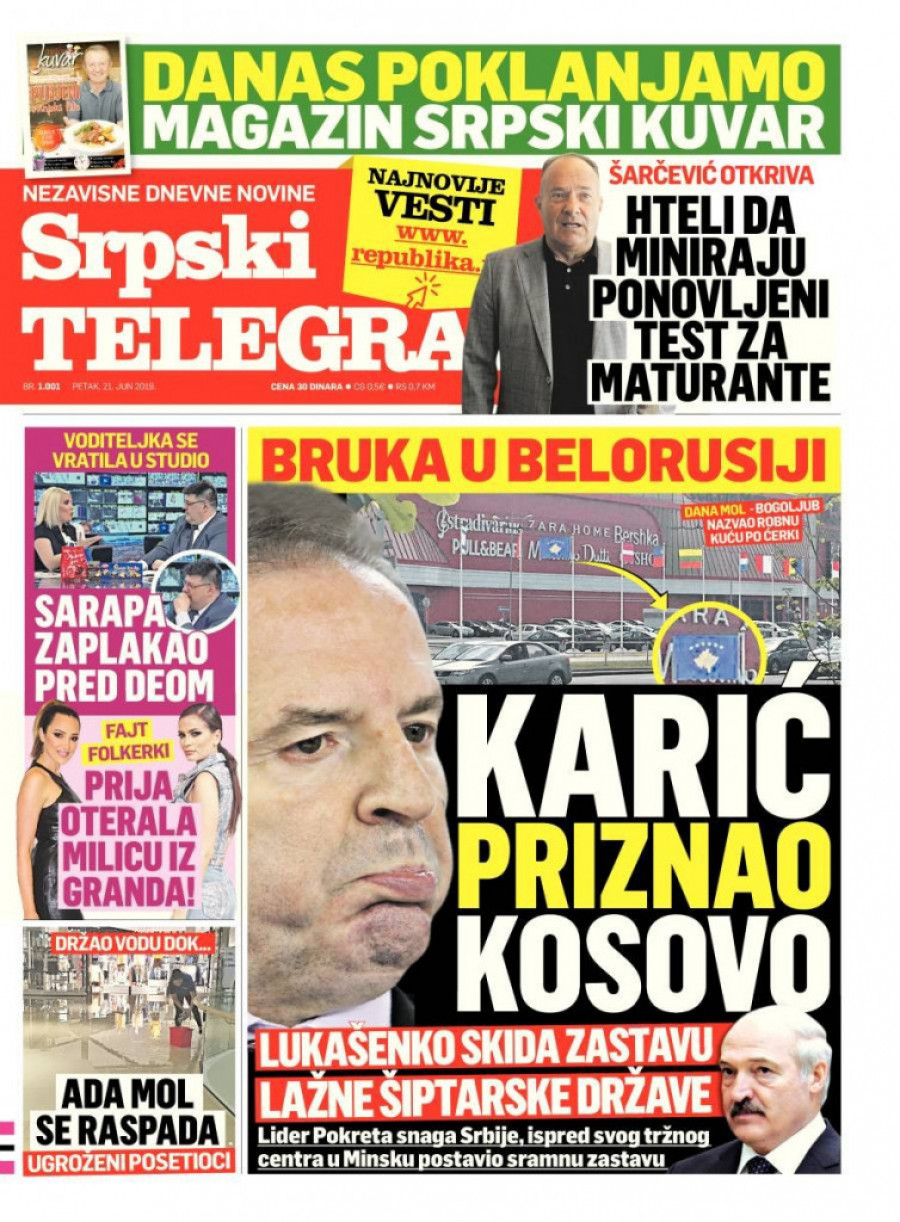 Odgovor redakcije Srpskog telegrafa Kariću čitajte u ponedeljak...