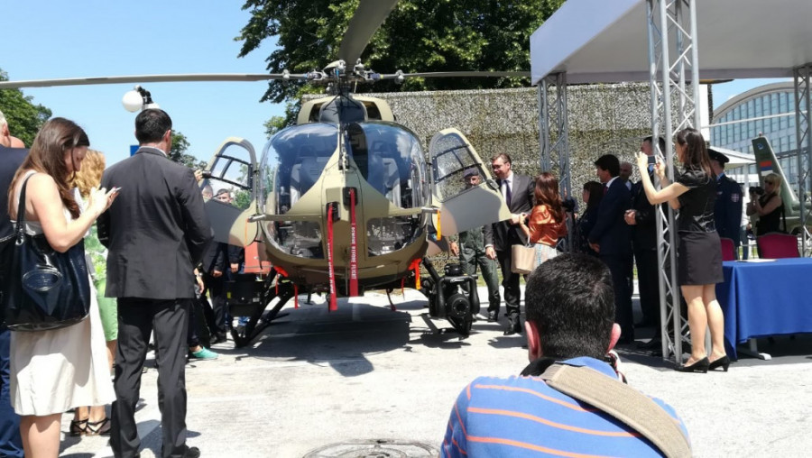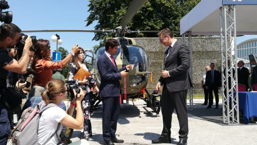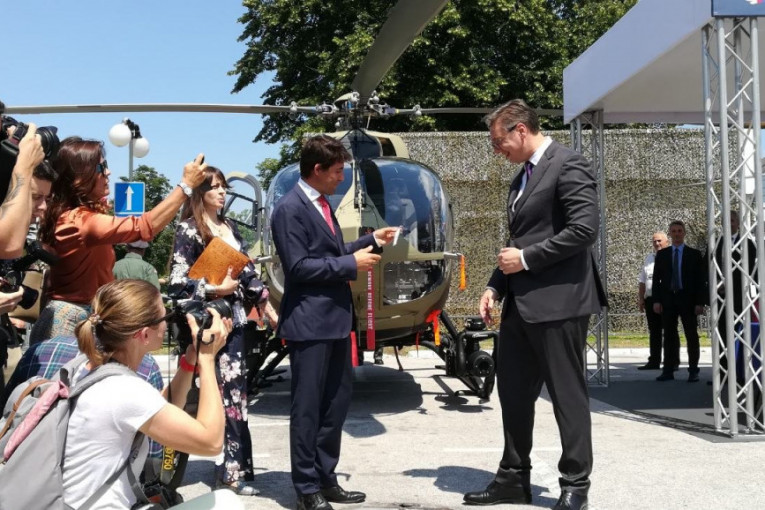 Nakon obilaska štandova, Aleksandar Vučić je preuzeo helikopter H 145M kompanije Erbas Helikopters iz Nemačka, koji će koristiti Vojsci Srbije.