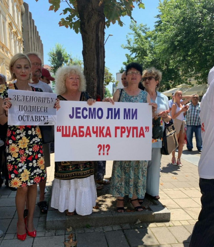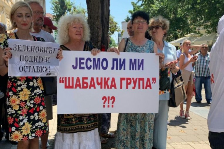 Protest protiv gradonačelnika Nebojše Zelenovića održava se trenutno ispred Gradske uprave u centru Šapca.