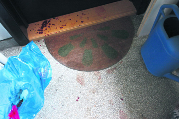 Ekipa Srpskog telegrafa zatekla je juče ujutro na licu mesta jeziv prizor. Tragovi krvi vodili su od stana koji se nalazi na drugom spratu sve do izlaza iz zgrade.
