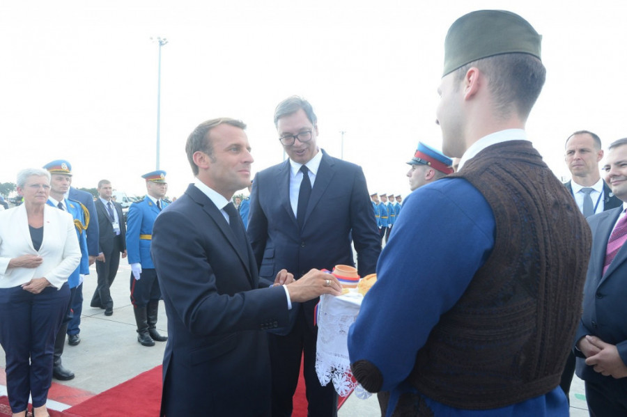 Budno oko kamere ispratilo je dolazak francuskog predsednika Emanuela Makrona u Srbiju - od sletanja njegovog aviona, praćenog sa tri srpska "miga-29", preko stupanja na naše tlo, na kojem ga je dočekao srpski kolega Aleksandar Vučić, do tradicionalnog posluženja dragih gostiju za dobrodošlicu - hlebom i solju.