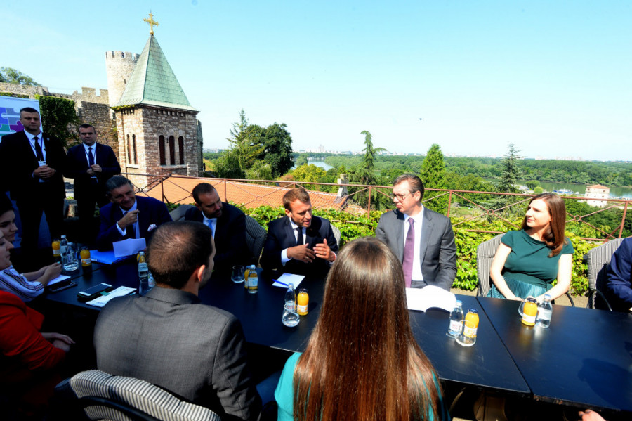 Predsednik Francuske Emanuel Makron završio je danas dvodnevnu posetu našoj zemlji i to planiranim razgovorom sa studentima iz Regionalne kancelarije za saradnju mladih (RYCO) na Kalemegdanu.