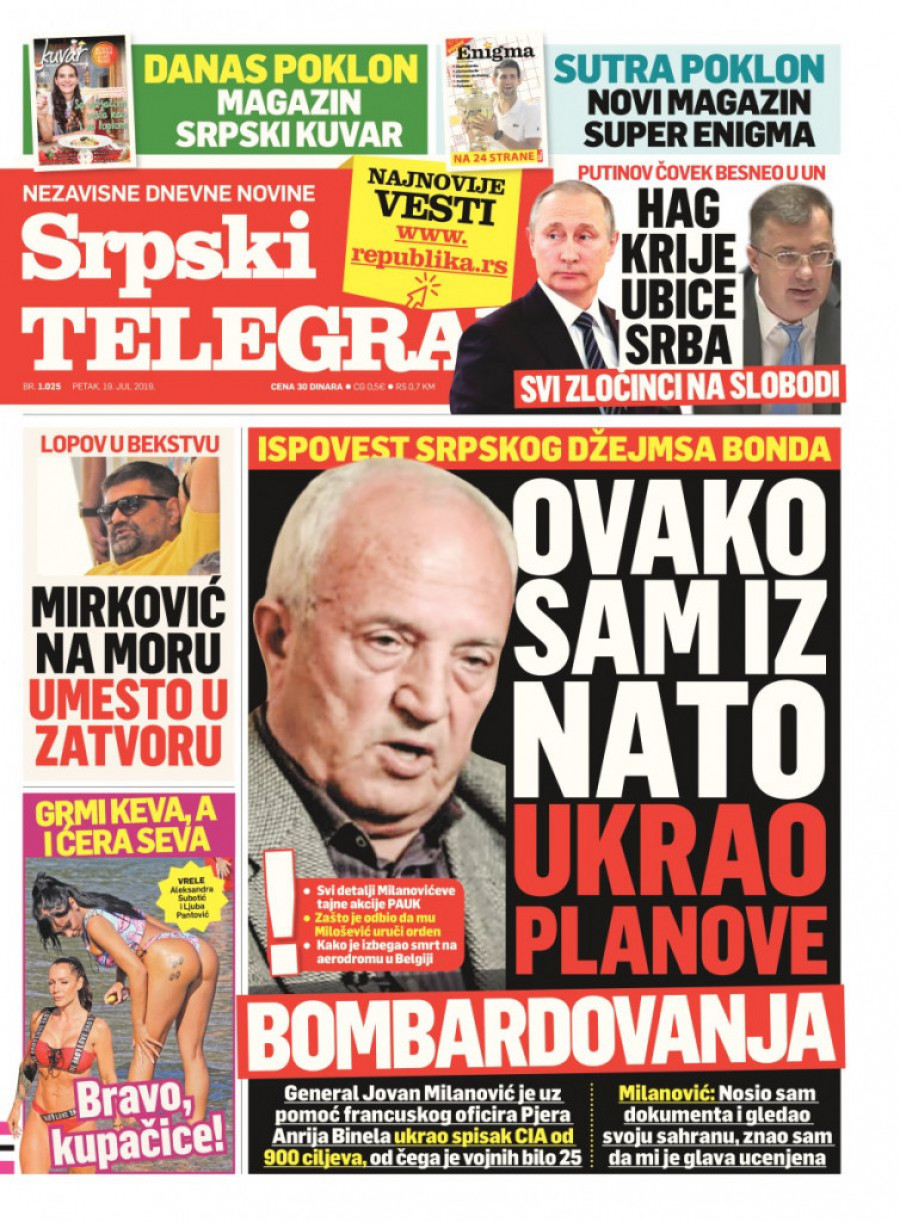 Srpski Džems Bond, general Jovan Milanović, od NATO je 1998. ukrao plan napada na Srbiju, i to usred Brisela. Supertajna dokumenta dobio je zahvaljujući pomoći francuskog oficira Pjer-Anri Binela (deda mu bio solunski borac), koji je kasnije otkriven i proveo je neko vreme u zatvoru. Kako Milanović priča u ispovesti, zaključno sa 29. septembrom 1998. godine, državni i vojni vrh SRJ imao je podatke o učesnicima agresije i potencijalnim ciljevima. Znalo se i o tačnom datumu donošenja odluke o početku napada. Međutim, nedostajali su dokumentovani podaci.