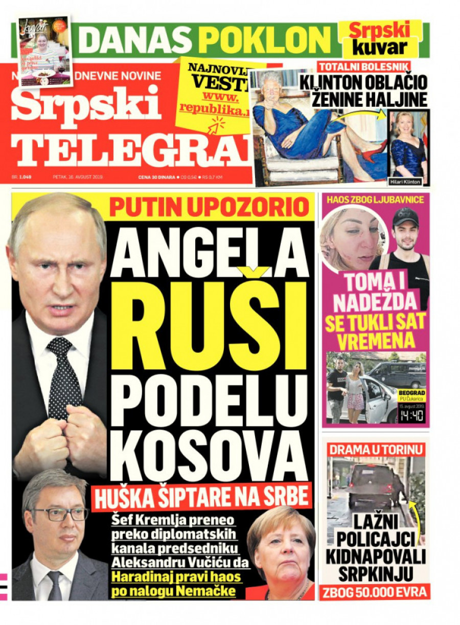 Šef Kremlja Vladimir Putin preneo je preko diplomatskih kanala predsedniku Srbije Aleksandru Vučiću upozorenje da Angela Merkel direktno stoji iza svega što prištinski čelnici, a pre svih Ramuš Haradinaj, preduzimaju poslednjih meseci, saznaje Srpski telegraf.