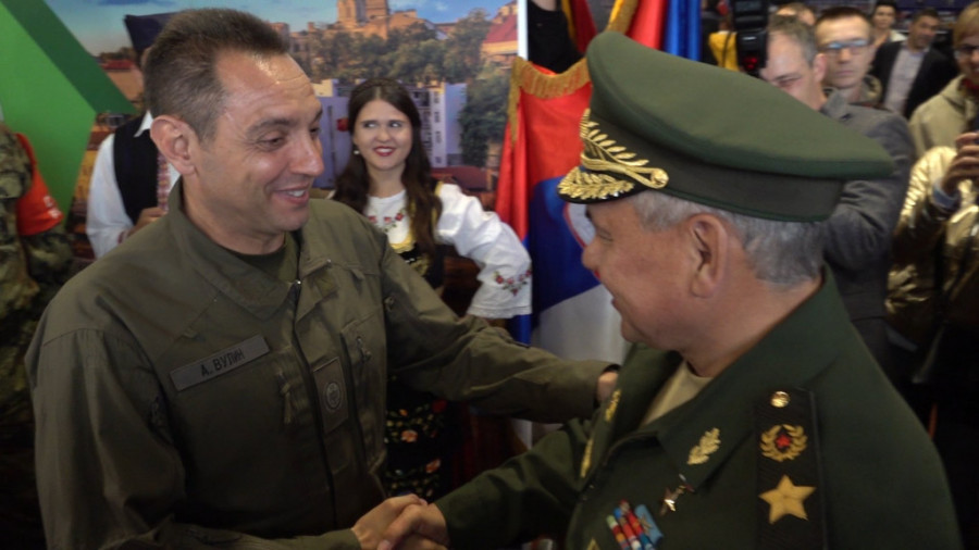 Foto: Tanjug/Ministarstvo odbraneVulin, koji na poziv ruskog ministra odbrane Sergeja Šojgua boravi u poseti Rusiji, sa ruskim kolegom prethodno je obišao štand Srbije u Domu družbe na kom je predstavljena naša zemlja, saopštilo je Ministarstvo odbrane.