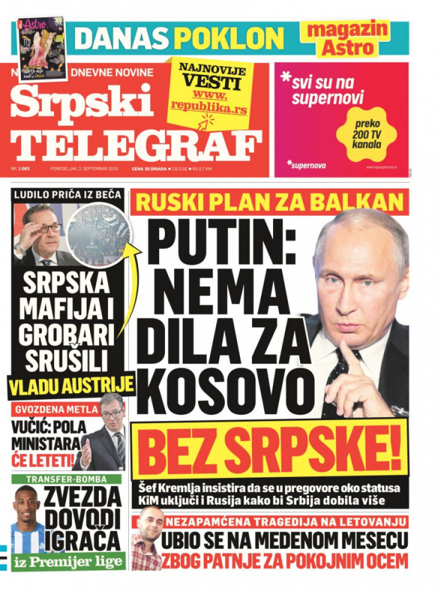Samo u Srpskom telegrafu: Detalji Putinovog plana za Kosovo